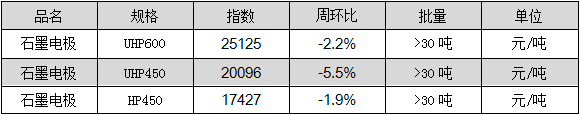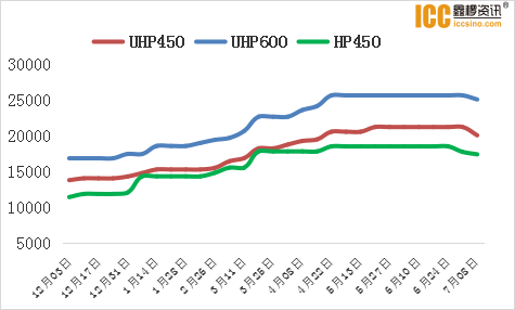 Mai i te 8 o Hurae, ko te utu auraki o UHP450mm me te 30% ngira coke i te maakete ko te 19,500-20,000 CNY / ton; te utu auraki o UHP600mm ko 24,000-26,000 CNY/ton, heke iho 1,000 CNY/ton whakaritea ki te wiki whakamutunga; te utu o UHP700mm ko 28,000-30,000 CNY / ton, ki raro 2,000 CNY / ton.